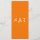 A colourful retro funky modern bright orange wedding dinner menu. Which features chic template design of boho vintage bright orange background and white typography and hand written menu in white. And hand drawn champagne glasses . With monogram in the back. Perfect and matching with the whole suite.