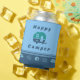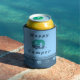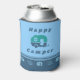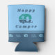 Happy Camper can cooler with retro RVs in blue and teal . Perfect for your camp site, home, pool or the beach.
