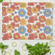 A Colourful Retro Happy Face Flower Kitchen Towel In Blues, Yellow And Orange Florals