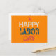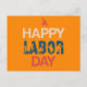 Retro Happy Labour Day In Retro Blue Holiday Postcard