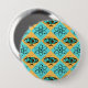 This Retro Harlequin Globe Trotter Round Button design features a repeating pattern of an abstract oval globe with wood grain continents and atomic symbols. The oceans on the vintage globe are in shades of teal and turquoise. The globe is on a triangular wooden stand and the whole world is on a wheat coloured background. The atomic symbols are on a turquoise background. This design is kitschy, space age goodness at its finest!
