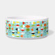 This Retro Harlequin Pattern Ceramic Dog Bowl is mid century modern style at its finest. The vintage inspired design features an aqua background with rows of triangular shapes forming a harlequin pattern. The two-toned diamond shapes are yellow, white, red, orange, black, green, and white with black accents. But wait, there’s more! There are also orange ovals, green ovals with black starbursts, and outlines of black diamonds. Time marches on, but you’ll feel like you’ve found a kitschy blast from the past with this colourful geometric treasure.