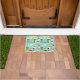 This Retro Harlequin Pattern Door Mat is mid century modern style at its finest. The vintage inspired design features an aqua background with rows of triangular shapes forming a harlequin pattern. The two-toned diamond shapes are yellow, white, red, orange, black, green, and white with black accents. But wait, there’s more! There are also orange ovals, green ovals with black starbursts, and outlines of black diamonds. Time marches on, but you’ll feel like you’ve found a kitschy blast from the past with this colourful geometric treasure.