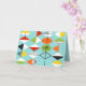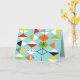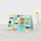 This Retro Harlequin Pattern Greeting Card is mid century modern style at its finest. The front of this vintage inspired design features an aqua background with rows of triangular shapes forming a harlequin pattern. The two-toned diamond shapes are yellow, white, red, orange, black, green, and white with black accents. But wait, there’s more! There are also orange ovals, green ovals with black starbursts, and outlines of black diamonds. The interior of this greeting card is solid aqua with plenty of space for personalising. Time marches on, but you’ll feel like you’ve found a kitschy blast from the past with this colourful geometric treasure.