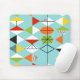 This Retro Harlequin Pattern Mousepad is mid century modern style at its finest. The vintage inspired design features an aqua background with rows of triangular shapes forming a harlequin pattern. The two-toned diamond shapes are yellow, white, red, orange, black, green, and white with black accents. But wait, there’s more! There are also orange ovals, green ovals with black starbursts, and outlines of black diamonds. Time marches on, but you’ll feel like you’ve found a kitschy blast from the past with this colourful geometric treasure.