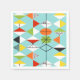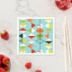 These Retro Harlequin Pattern Paper Napkins are mid century modern style at its finest. The vintage inspired design features an aqua background with rows of triangular shapes forming a harlequin pattern. The two-toned diamond shapes are yellow, white, red, orange, black, green, and white with black accents. But wait, there’s more! There are also orange ovals, green ovals with black starbursts, and outlines of black diamonds. Time marches on, but you’ll feel like you’ve found a kitschy blast from the past with this colourful geometric treasure.