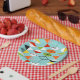 These Retro Harlequin Pattern Paper Plates are mid century modern style at its finest. The vintage inspired design features an aqua background with rows of triangular shapes forming a harlequin pattern. The two-toned diamond shapes are yellow, white, red, orange, black, green, and white with black accents. But wait, there’s more! There are also orange ovals, green ovals with black starbursts, and outlines of black diamonds. Time marches on, but you’ll feel like you’ve found a kitschy blast from the past with this colourful geometric treasure.