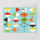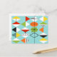 This Retro Harlequin Pattern Postcard is mid century modern style at its finest. The vintage inspired design features an aqua background with rows of triangular shapes forming a harlequin pattern. The two-toned diamond shapes are yellow, white, red, orange, black, green, and white with black accents. But wait, there’s more! There are also orange ovals, green ovals with black starbursts, and outlines of black diamonds. Time marches on, but you’ll feel like you’ve found a kitschy blast from the past with this colourful geometric treasure.
