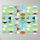 This Retro Harlequin Pattern Poster is mid century modern style at its finest. The vintage inspired design features an aqua background with rows of triangular shapes forming a harlequin pattern. The two-toned diamond shapes are yellow, white, red, orange, black, green, and white with black accents. But wait, there’s more! There are also orange ovals, green ovals with black starbursts, and outlines of black diamonds. Time marches on, but you’ll feel like you’ve found a kitschy blast from the past with this colourful geometric treasure.