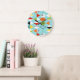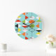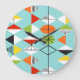 This Retro Harlequin Pattern Round Acrylic Clock is mid century modern style at its finest. The vintage inspired design features an aqua background with rows of triangular shapes forming a harlequin pattern. The two-toned diamond shapes are yellow, white, red, orange, black, green, and white with black accents. But wait, there’s more! There are also orange ovals, green ovals with black starbursts, and outlines of black diamonds. Time marches on, but you’ll feel like you’ve found a kitschy blast from the past with this colourful geometric treasure.