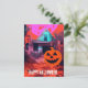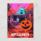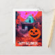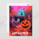 Retro Haunted Halloween House Pink Orange Blue Postcard