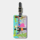 Mele Kalikimaka! This customisable Retro Hawaiian Christmas Luggage Tag features a minimalist cartoon drawing of an attractive couple taking the holiday trip of a lifetime! The mid century modern scene is set in a tropical airport. Mr. and Mrs. Tourist are posing in front of the floor to ceiling glass walls. After all, they want to document every moment of their vacation to paradise. Mr. Tourist is dressed in a black suit, light blue shirt, red tie, and black fedora. He is holding an orange suitcase. His arm is around his beautiful bride. She is wearing a hot pink dress. A bright blue handbag is slung over one arm. A Santa hat is gracing her blonde head. It wouldn't do to travel by air and not look your best! Both of them are wearing colourful flower leis around their necks. Beside them, we see a stunning, golden skinned hula girl with flowing black hair. Miss Hula is wearing a traditional grass skirt. Her hula top has a festive twist, however. Her bikini top is red with white trim. Eat your heart our, Mrs. Claus! Instead of a flower, she is wearing a sprig of holly in her hair. On one arm, she has an extra Hawaiian lei ready to offer the next person to step off the plane. Ah, can't you smell the orchids now? On the opposite side of the couple, there is a Christmas tree that has been given an island makeover. The happy cedar is decked out with pastel seashells and starfish. On the opposite side of the glass, we can see the luxury, jumbo jetliner that brought the couple to their vacation destination. On the tarmac, 1960's style flight attendant is making her way to the building. She is wearing a form fitting, blue uniform and a blue pillbox hat. Yowza! That gorgeous blonde can offer me coffee, tea, or milk anytime! The sky a shade of aqua that makes you want to reach for the suntan oil! We can see the green silhouettes of palm trees and the dark blue silhouette of a plane flying among the fluffy, light blue clouds. Oh, I hope those poor suckers on that plane aren't on their way back to the daily grind! Aloha! The opposite side of the tag features an aqua background and plenty of room for personalising with your contact information.