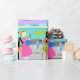 Mele Kalikimaka! This Retro Hawaiian Christmas Wrapping Paper features a repeating minimalist cartoon drawing of an attractive couple taking the holiday trip of a lifetime! The mid century modern scene is set in a tropical airport. Mr. and Mrs. Tourist are posing in front of the floor to ceiling glass walls. After all, they want to document every moment of their vacation to paradise. Mr. Tourist is dressed in a black suit, light blue shirt, red tie, and black fedora. He is holding an orange suitcase. His arm is around his beautiful bride. She is wearing a hot pink dress. A bright blue handbag is slung over one arm. A Santa hat is gracing her blonde head. It wouldn't do to travel by air and not look your best! Both of them are wearing colourful flower leis around their necks. Beside them, we see a stunning, golden skinned hula girl with flowing black hair. Miss Hula is wearing a traditional grass skirt. Her hula top has a festive twist, however. Her bikini top is red with white trim. Eat your heart our, Mrs. Claus! Instead of a flower, she is wearing a sprig of holly in her hair. On one arm, she has an extra Hawaiian lei ready to offer the next person to step off the plane. Ah, can't you smell the orchids now? On the opposite side of the couple, there is a Christmas tree that has been given an island makeover. The happy cedar is decked out with pastel seashells and starfish. On the opposite side of the glass, we can see the luxury, jumbo jetliner that brought the couple to their vacation destination. On the tarmac, 1960's style flight attendant is making her way to the building. She is wearing a form fitting, blue uniform and a blue pillbox hat. Yowza! That gorgeous blonde can offer me coffee, tea, or milk anytime! The sky a shade of aqua that makes you want to reach for the suntan oil! We can see the green silhouettes of palm trees and the dark blue silhouette of a plane flying among the fluffy, light blue clouds. Oh, I hope those poor suckers on that plane aren't on their way back to the daily grind! Aloha!