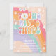 Celebrate your little ones special day with this retro hippie-inspired 3rd birthday invitation! Featuring a colorful pastel rainbow background with peace signs, flowers, stars, and lightning bolts, this playful design captures the spirit of fun, love, and groovy vibes. Perfect for a "Young, Wild & Three- themed party, this invitation is both eye-catching and memorable. Customize with your event details to create a unique keepsake that guests will love.