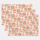 Retro Hippie Boho 70s Flower Pattern Pink Green Wrapping Paper Sheets