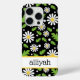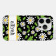 This iphone 15 pro phone case is so cute and girly! It's hippie 70s daisy floral pattern with multi-sized white and yellow daisies on a black background and your name in a fun trendy font will go with everything! It will look fabulous on your phone!