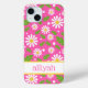 This iphone 15 plus phone case is so cute and girly! It's hippie 70s daisy floral pattern with multi-sized white and yellow daisies on a pink background and your name in a fun trendy font will go with everything! It will look fabulous on your phone!