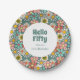 Retro Hippie Groovy Flower Hello Fifty Birthday Paper Plate