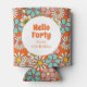 Retro Hippie Groovy Flower Hello Forty Birthday Can Cooler