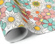 Groovy Retro Hippie Flower on White Backdrop Birthday wrapping paper.