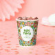 Groovy Retro Hippie Flower on Green Backdrop Birthday paper cup.