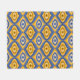 Psychedelic blanket with weird eye pattern indigo blue and honeycomb yellow colours. This fun eclectic quirky pattern resembles retro modern mid-century style due to its geometric shapes.
