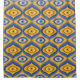 Psychedelic shower curtain with weird eye pattern indigo blue and honeycomb yellow colours. This fun eclectic quirky pattern resembles retro modern mid-century style due to its geometric shapes.