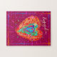 Retro Hippie Pink Turquoise Heart Engaged Jigsaw Puzzle