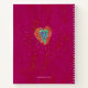 This couple's wedding planner notebook features a retro hippie styled heart in red, pink and turquoise on a pink background. Personalise with the couple's names and wedding date in modern script. Designed by world renowned artist Tim Coffey.
