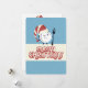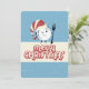 Cute retro or vintage style winking dinner plate wearing a winter candy-striped hat and holding a fork on this Christmas holiday card for gifting your list with holiday baking, foods, and treats, personalised with your text and signature line on the back and your choice of colour scheme.