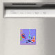 This Retro Home for the Holidays Christmas Magnet looks like a scene out of a 1960's television Christmas special. The minimalist design features an attractive cartoon couple in the living room of a mid century modern house. The room prominently features a purple and blue stone wall and a matching purple and blue striped rug. Against the wall, there is a turquoise cone shaped fireplace with a roaring fire. Two, red and white Christmas stockings have been hung by the mod chimney with care. Strands of colourful Christmas lights are strung across the top of the wall. In the corner, the suave man of the house is lounging in a red egg chair. He is wearing a blue suit with a red tie. There is a sprig of holly pinned to his lapel. In one hand, he is holding a martini glass. No wonder he's so full of the Christmas spirit! Beside him, there is a small, green Christmas tree with teal ornaments and a yellow star. Hanging from the ceiling, there is a yellow Sputnik light fixture. A blonde with an hourglass figure is sitting on the rug. She is wearing a festive, red dress and Santa hat. Beside her, on the floor, there is a blue and black portable record player. Several Christmas albums are scattered near the beautiful deejay. Go ahead and sing along. You know you want to!