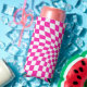 Retro Hot Pink Checked Warped Chequered Seltzer Can Cooler