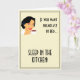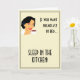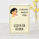 A retro housewife style card with funny cover. Card reads" If you want breakfast in bed... SLEEP IN THE KITCHEN!" All text can be customised including writing inside card.