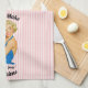 Retro Housewife Wine Pink Stripe Tea Towel