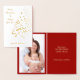 This pretty personalised Christmas card combines the best of modern Holiday card trends. The front features an artistic Christmas tree and star swirl design in gold foil, with a shower of snowflakes around it. There are two text fields for you to customise. The inside of the front has your 5 x 7 photo, bordered in bright red, which can be displayed throughout the year. The inside back is also red, with two more custom text fields. Make it say whatever you'd like!
