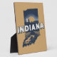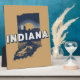 Stylish tabletop art plaque features retro style scenic state silhouette of Indiana on light brown background.