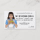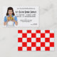 This retro inspired designs features a 1950's woman wearing a powder blue dress with a white apron. She is holding a serving plate filled with drinks, popcorn and hamburgers. This versatile design has plenty of text and can be customised for any restaurant business. The flip side of this vintage card features a customisable red and white chequerboard pattern.