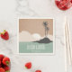 Paper napkins featuring a vintage inspired illustration of two palm trees on an island with clouds and sunset at horizon. Personalise the text. Look for matching invitations and other coordinating items at Jill's Paperie.