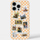 Create your own custom photo collage iPhone Case. Simply add 9 of your favourite pictures to this collage template featuring instant film photo style frames and retro orange chequered background.