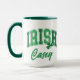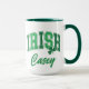 Show your Irish pride with this fun two-toned coffee mug that features the word "IRISH" in a curved retro varsity-lettering font in distressed colours of light and dark green. Personalise by adding your name or special text. A great accessory for the St. Patrick Day season.