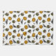 This fun kitchen towel features retro Jack o' Lantern trick or treat buckets, ravens, and and festive black cats set on a white background.