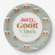 Retro "Jolly Good Vibes" Christmas Party Paper Plate