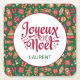 Retro Joyeux Noel Personalised Square Paper Coaster