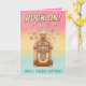 Turn up the volume on their special day with this retro-themed birthday card! The design features a classic vintage jukebox topped with a festive cupcake, exploding with colorful confetti, music notes, and vinyl records against a vibrant pink and yellow gradient background. It's the perfect way to tell a music lover to "Rock On!" and have a great birthday.
