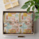 The application of this decoupage paper was very simple , applied with PVA glue on a plywood surface. The colour stayed true to paper before application . I used cling film to apply over ply wood , no wrinkles , very pleased with the result.