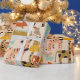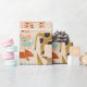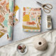 This retro style design features cute illustrations of an assortment of jungle animals birds, lions, giraffes, zebra, elephants, crocodiles, snakes, monkeys and more in shades of aqua blue, golden yellow, orange, brown and peach are set against a cream coloured background. This wrapping paper is perfect for wrapping up gifts for young children.
