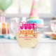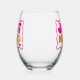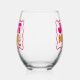 Celebrate the bride-to-be with these trendy and unique stemless wine glasses. This pink and peachy orange "just drunk" retro themed stemless wine glass is customisable with your recipient's name. These make perfect and memorable party favours!