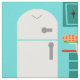 With this Retro Kitchen Fabric, you can have your pie and eat it, too. This kitschy, minimalist art drawing features a perfect 1950's housewife, in her mid century modern kitchen. The beautiful baker is wearing a flouncy, green dress and a white apron with red detailing. Not a hair on her blonde head is out of place. In one hand, she is holding the fruit of her labour--a gorgeous, lattice topped, fruit pie. One glance and you'll know that her flaky pie crusts are second to none. She is standing on an aqua and teal chequerboard floor, which is undoubtedly clean enough to eat off of. Against an aqua wall, we see teal cabinetry with aqua trim work, a red countertop, red drawer pulls, and black starburst accents. A red, starburst clock is hanging on the wall. To the side, there is a state of the art, white refrigerator with silver handles. At least, the fridge was state of the art in 1950's. Now, it's just plain dreamy! Whether you're Suzie Homemaker or simply have an affinity for all things vintage, you're sure to love this scrumptious slice of Americana.