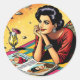 Retro Lady at Beach Daydreaming about Fashion Classic Round Sticker