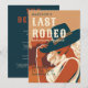 An elegant last rodeo bachelorette weekend invitation with a retro vintage theme, featuring a poster style illustration of a beautiful woman wearing a cowgirl hat, in a flirty pose, with a vintage terracotta and dark blue colour scheme. A fun bachelorette weekend party invitation for a bride who loves retro and vintage, country chic, romantic cowgirl, art designs, illustration. Also perfect for a desert themed celebration.